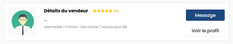 Sur notre plateforme SiteMarket, vous pouvez envoyer un message au vendeur afin d’obtenir plus d’informations. Vous pourrez retrouver l’historique de vos conversations depuis votre espace client, dans la messagerie !